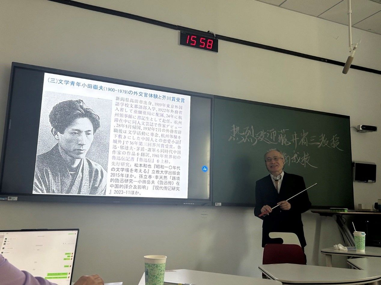 3月26日,日本东京大学名誉教授、中日比较文学领域的泰斗级学者藤井省三先生,于南京师范大学随园校区北大楼举办了一场专题讲座,聚焦于抗日战争时期鲁迅及其传记作家群体。日语专业的本硕博学生及教师数十人齐聚一堂,现场学术气息浓郁,互动热烈。