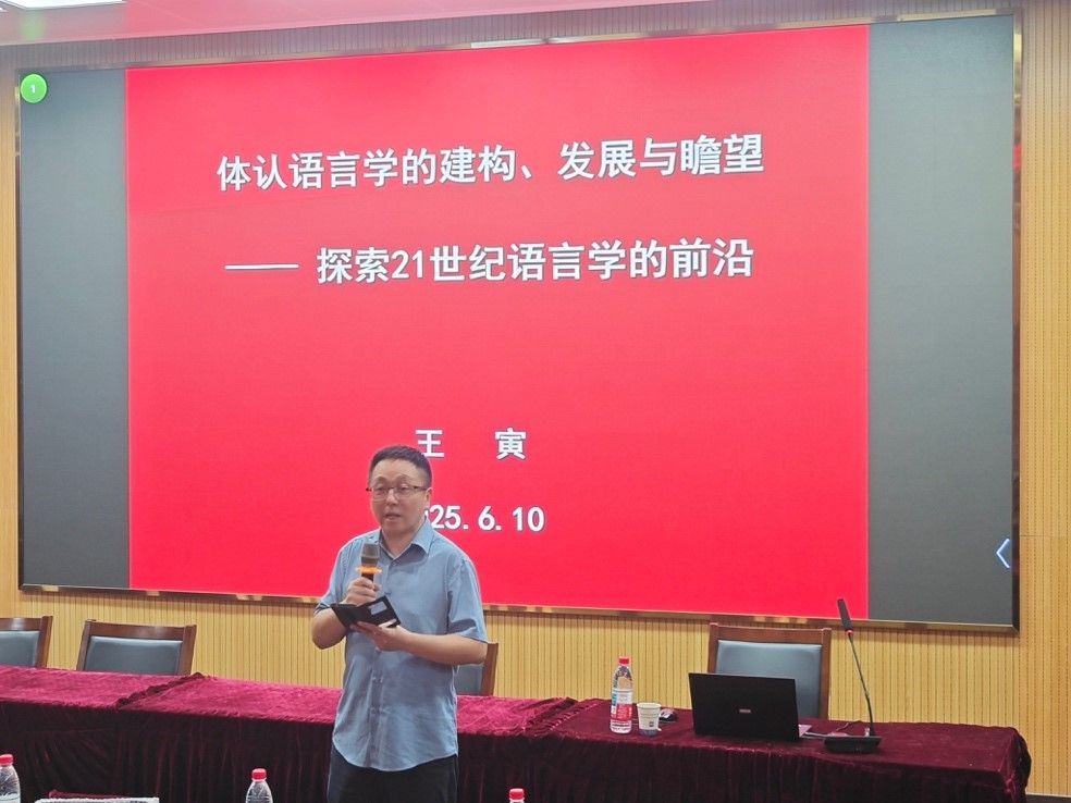邀请了中国英汉语比较研究会中西语言哲学专业委员会名誉会长、体认语言学研究会会长、四川外国语大学二级教授王寅老师,以“体认语言学的建构、发展与瞻望——探索21世纪语言学前沿”为主题,为外院师生带来了一场学术盛宴。