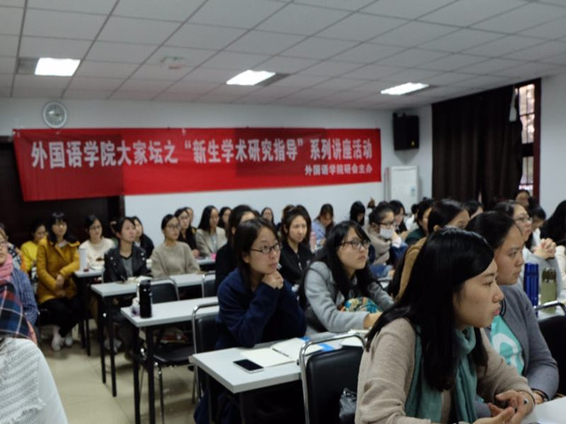 11月14日下午,博彩网址大全 研究生会学术部成功邀请南师大外院杨靖副教授为博彩大全 研一新生带来主题为“翻硕项目报告选题举隅”的学术指导讲座。该讲座是外院研会主办的博彩网址大全 “大家坛”之新生指导系列讲座活动的一部分,旨在增强新生与导师的交流与认识,并为翻硕同学们详细系统地介绍了项目报告的选题过程,同学们收获颇丰。本次讲座由研会成员袁洁然主持,博彩大全 70余名研一同学聆听了讲座。