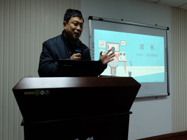 倪传斌教授从“读什么书”与“怎样读书”两个角度为我们生动阐述了他的读书心迹。首先就“读什么书”而言,倪教授指出作为一名学者,读专业书占据了他大部分时间;但是作为一名生活中的人,历史、文学、经典能给人以心灵启迪。历史书籍帮助当下人了解历史,了解未来。倪教授引用一句关于历史的评论解释了历史书籍的价值:“如果你看不清现在,那就读历史,历史告诉你未来;如果你看不懂历史,看看当下,因为历史正在重演。”结合自己对“语言磨蚀”这个术语提出的经历,他告诉我们历史书籍教会人看清现实世界自己所处的位置,并获得视野与意志力。文学书籍教会人们把握人生。倪教授以自己从误解文学到欣赏文学的观念转变经历,深刻道出文学就是生活学这一内涵。第三是读经典书籍,以论语为例,他用自己的经历解读论语的片段,使同学们对学习和与人相处有了新的视角。第四讲到占据大部分时间的专业书籍,原则是尚经典之作,作品可以是专著,专刊和专家,经典作品是帮助入门一个研究领域最可信赖的帮手。倪教授还指出读文献的重要性,无论是论文的选题、写作中的疑问或讨论都要随时查阅和阅读文献。