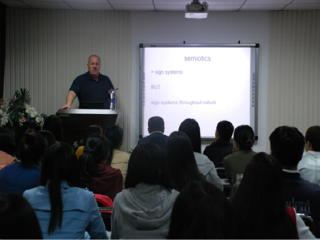 2016年4月20日(周三)下午两点半,南京师范大学讲座教授、国家符号学会会长、英国米德萨克斯大学语言与传播研究教授Paul Cobley 于随园校区700号楼一楼报告厅为大家带来了题为“Cultural implications of biosemiotics”的精彩讲座。该讲座是“语言与文化符号学”系列讲座之一,下周Cobley教授还会为大家带来该系列的下一个讲座,欢迎大家前来聆听。本次讲座由博彩大全