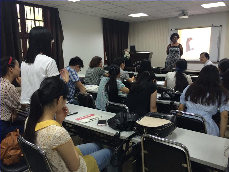 讲座开始前, King教授分别让在场的每一位听众进行了自我介绍,以此拉近了和在场听众的距离,并使场面迅速活跃起来。King教授首先为老师和同学们介绍了以Alice Walker为主要代表的一系列著名黑人女性作家,精彩地呈现了妇女主义思潮的起源和发展。紧接着, King教授通过让听众们参与活动,在冥想中感受妇女主义文学的深刻魅力,从而以别具匠心的方式阐释了妇女主义的内涵,强调了“爱”是其定义的核心。King教授在讲座中将 “女性主义”和“妇女主义”的概念进行对比,全面详细的阐释了两者的不同,让同学们对妇女主义有了更加清楚和深刻的理解与认识。King教授运用生活实例,幽默风趣的将妇女主义的“反压迫、日常性、非意识形态、社区性与精神化”的五大主要特征分别淋漓尽致地展现了出来。