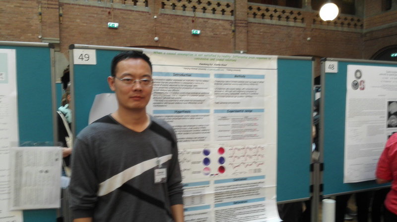 张辉教授、徐晓东博士应邀参加了大会,并以海报形式展示了他们各自在熟语认知神经机制以及语用推理神经机制方面的最新研究成果。外院孙晓霞博士也专门从德国科隆大学赴会,同与会专家学者进行了积极的学术交流。