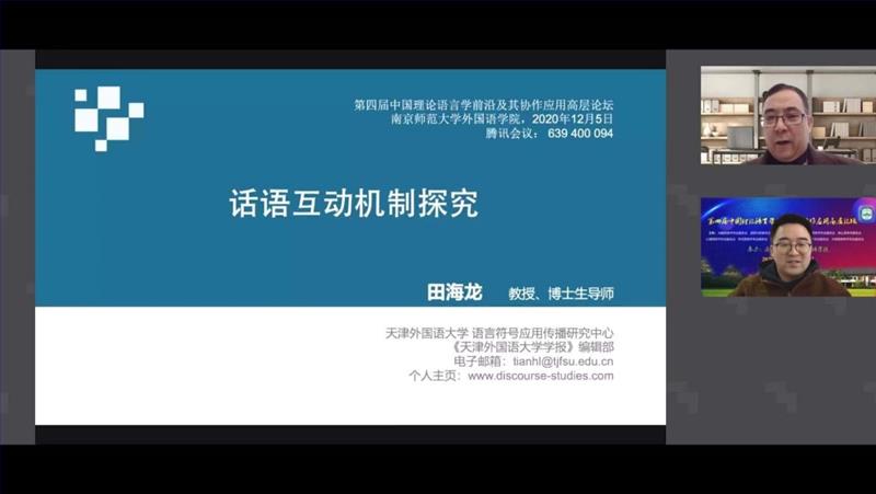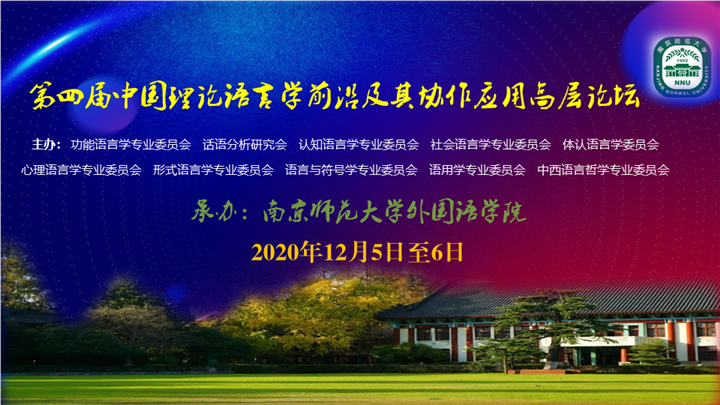 2020年12月5至6日,第四届中国理论语言学前沿及其协作应用高层论坛以腾讯会议线上直播的形式成功召开。此次论坛由功能语言学专业委员会、话语分析研究会、认知语言学专业委员会、社会语言学专业委员会、体认知语言学专业委员会、心理语言学专业委员会、形式语言学专业委员会、语言与符号学专业委员会、语用学专业委员会、中西语言哲学委员会主办,博彩网址大全-博彩网址