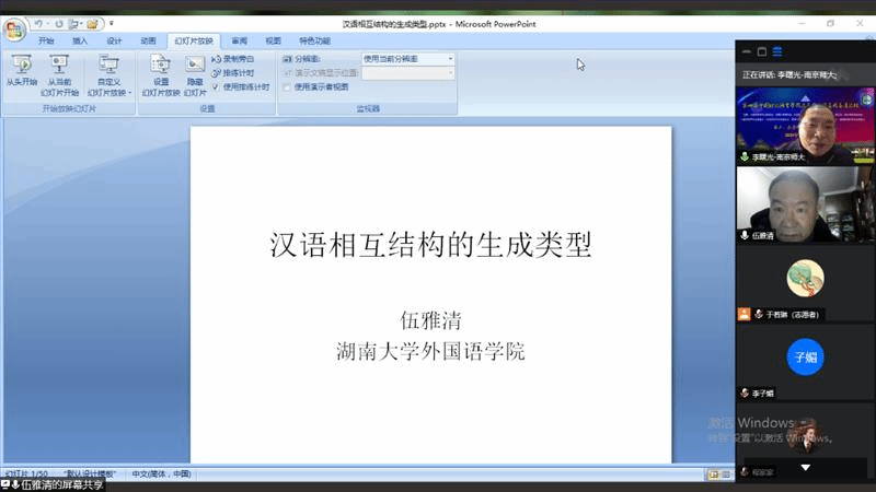 湖南大学的伍雅清教授作了题为“汉语相互结构的生成类型”的主旨发言。伍雅清教授运用生成语言学的基本理论来解释汉语使用现象,对其进行了跨语言角度的分析。采用大量丰富的跨语言事实来对相互结构的特征进行详细描写,并提出了其对现有结构的挑战。最后试图提出自己的解决方案,具有创新意义。