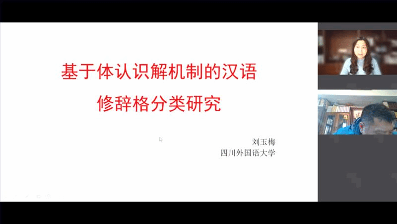 四川外国语大学的刘玉梅教授作了题为“基于体认识解机制的汉语修辞格分类研究”的主旨发言。在修辞格的研究方面,刘教授首先提出问题,参考认知参照点和体验性识解理论,以体验观、认知和识解理论为框架,以汉语修辞格为例,考察了修辞格的体认变化方式刘教授总结:修辞格也是人与现实互动体验与认知加工的结果。