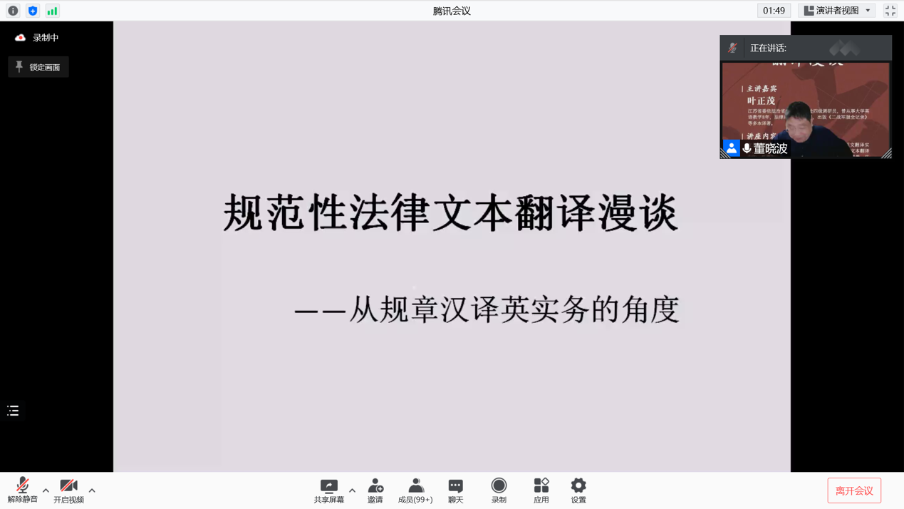 翻译硕士研究生及国内外法律翻译研究者150多人开设了“规范性法律文本翻译”的专题讲座。