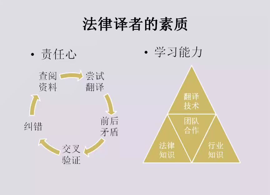 作为结语,叶正茂老师指出作为法律译者所应该具有的素质不仅有责任心,还有学习能力。需要学习法律知识以及行业知识,有时还需要团队合作。此外,在法律的一致性上有时还需要借助一定的技术。