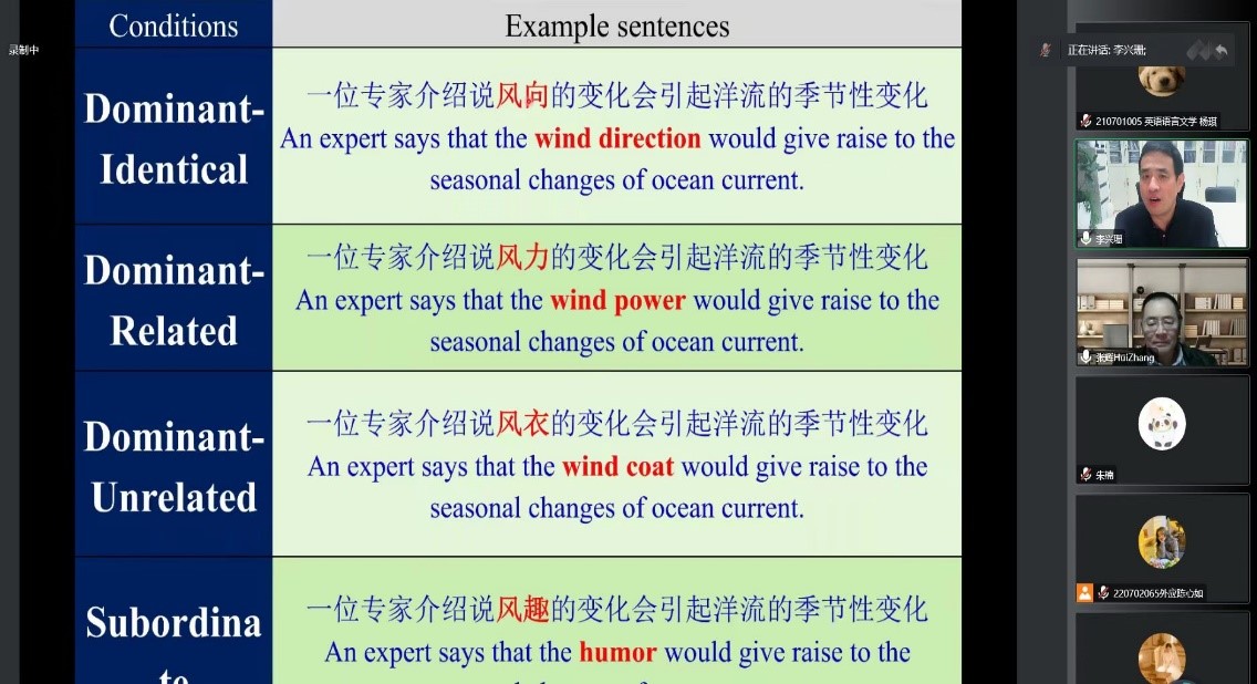 李兴珊教授主要从眼动跟踪技术简介、中文复合词加工的认知机制、句子阅读过程中的复合词语义加工及语义整合与其他相关研究四个方面入手,分享了近年来他所在团队对汉语复合词加工的研究。