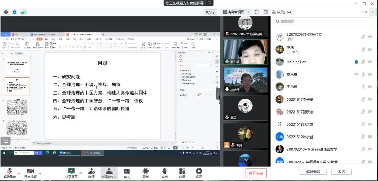 院长王永祥教授主持,共有近两百名校内外师生在线聆听。