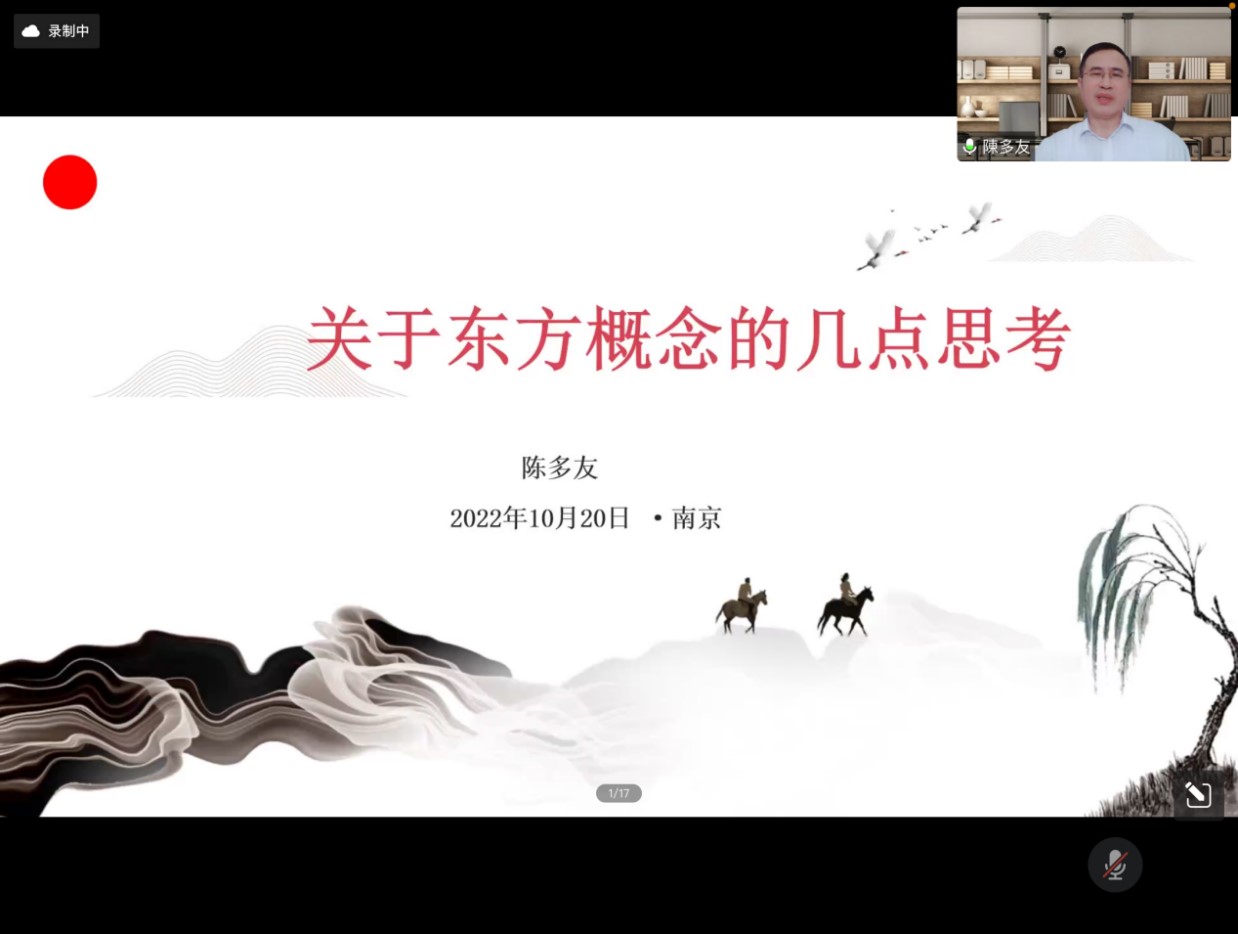 秋风清,梧桐落金陵;哲思明,名师点迷津。10月20日下午,“百廿南师·外语名家讲坛”系列讲座有幸请到陈多友教授,为我们展开以“关于东方概念的几点思考”为题的讲座,近三百名师生于云端聆听了本次讲座。陈多友教授系广东外语外贸大学日语语言文化学院暨亚非语言文化学院院长、二级教授、博士生导师,兼任越南社会与人文大学东方学学科博士生导师、教育部高等学校外语教学指导委员会日语专业指导分委员会委员、中国日语教学研究会副会长,华南分会会长,等等。陈多友教授在潜心教学工作、倡导教学改革之同时,致力于学术研究,著述丰瞻。近十余年来,在国内外公开发表学术论文60多篇(其中权威刊物10篇)、出版专著《研文肆言--文与中日文学研究》、《日本游沪派文学研究》,及其它各类著述40余部;主编、参编专业教材50余部;主持国家社科基金项目《文心雕龙日本百年传播史研究》以及其他各类省部级项目10余项。本次讲座由南京师范大学东方研究中心主任、日语系主任林敏洁教授主持。