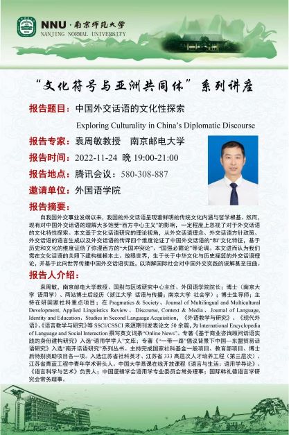 11月24日晚,依托王永祥教授的国际横向课题欧亚财团项目,“文化符号和亚洲共同体”系列讲座第十一讲在云端开讲。南京邮电大学国别与区域研究中心主任、博彩网址大全