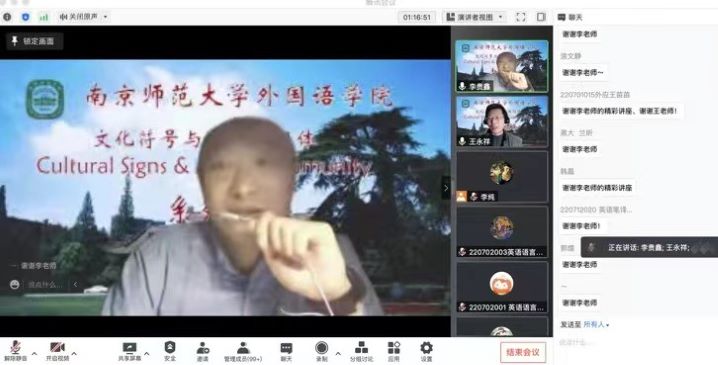 王永祥教授对本场讲座进行了精彩点评。王院长引用洛特曼的文化符号学理论,解释了文化和符号之间紧密相关、密不可分的关系,鼓励外语专业学生理解当代中国,做好中国式现代化伟大实践成果的国际传播。最后,李教授又与其他参会师生进行了热烈的交流和讨论。本次讲座内容精彩丰富,发人深思,兼具学习意义和文化内涵,为文化符号的探索研究和对外传播带来了借鉴与启示。本周四晚,“文化符号与亚洲共同体”系列讲座将开启第十三场,敬请期待。