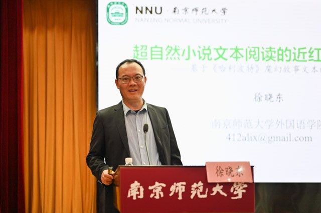 南京师范大学徐晓东教授做了题为“超自然小说文本阅读的近红外成像研究——基于《哈利波特》魔幻故事文本的阅读研究”的主旨报告。徐教授首先介绍了文学小说的特点,接着汇报了使用近红外光学成像技术探究读者在阅读超自然文本和现实文本时的脑神经机制。