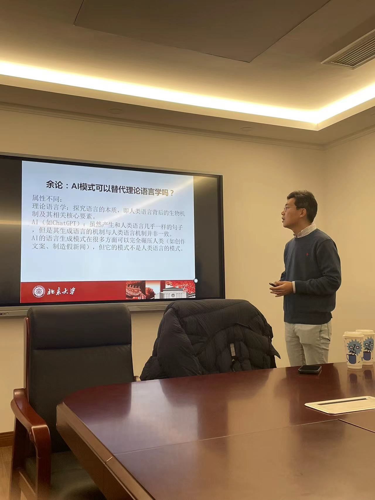 在讲座中,胡教授重点介绍了如何在日常的语言现象中发现困惑,如何构建论证与假设,如何对待反例等理论研究的核心问题,最后涉及到生成语言学与当下流行的人工智能语言模式的差别,进一步阐释了理论语言学研究在当今学界的核心意义。