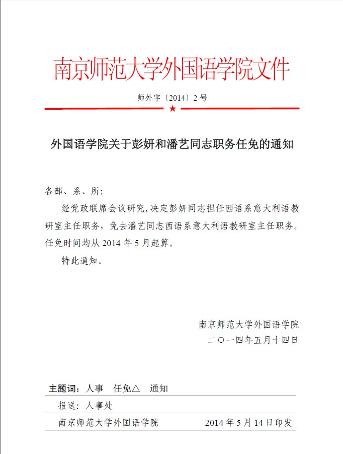 博彩网址大全 关于彭妍和潘艺同志职务任免的通知