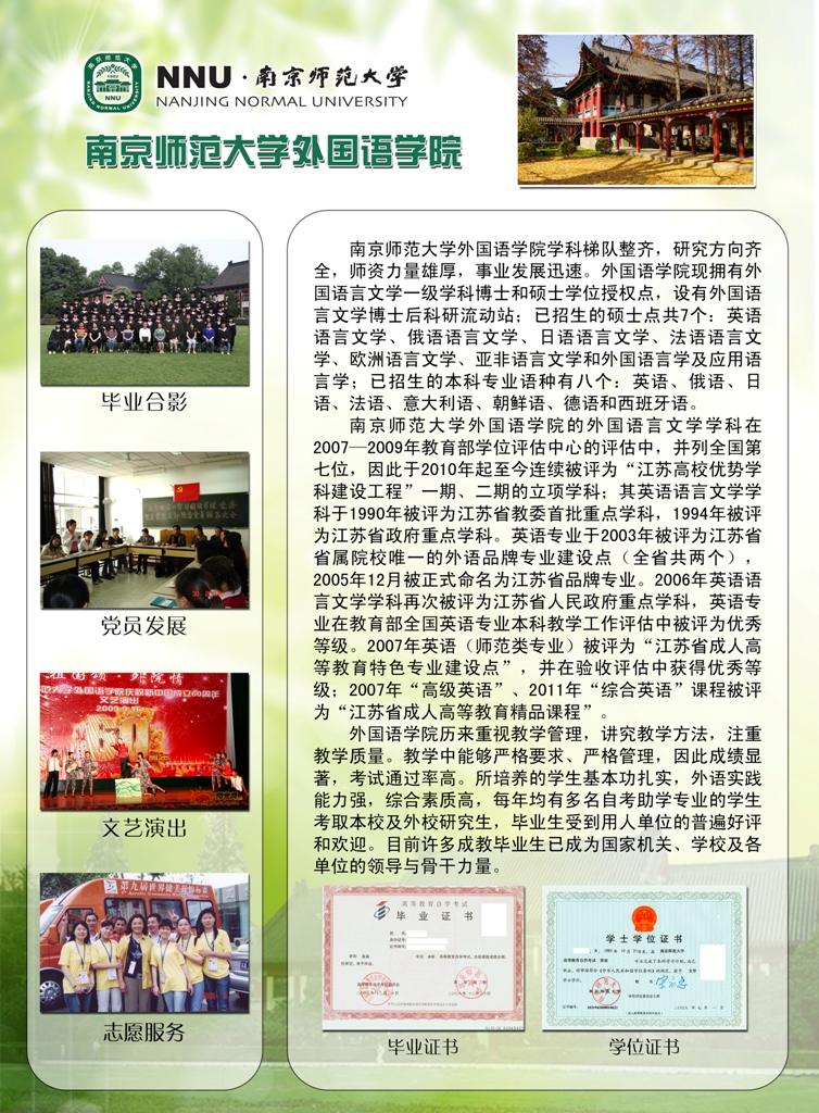 南京师范大学自2003年起被江苏省自学考试委员会确认为自学考试助学专业“英语专业”主考单位。经省自考委批准,博彩网址大全-博彩网址