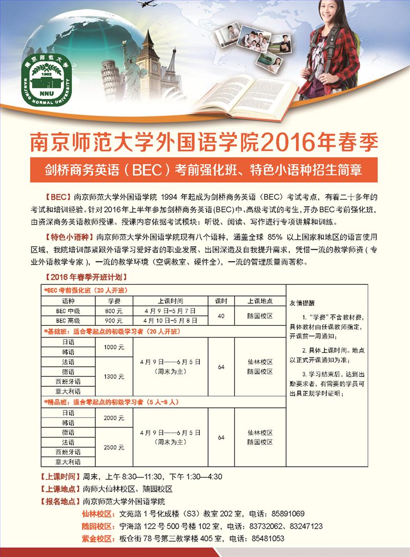 2016年春季剑桥商务英语(BEC)考前强化班、特色小语种招生简章