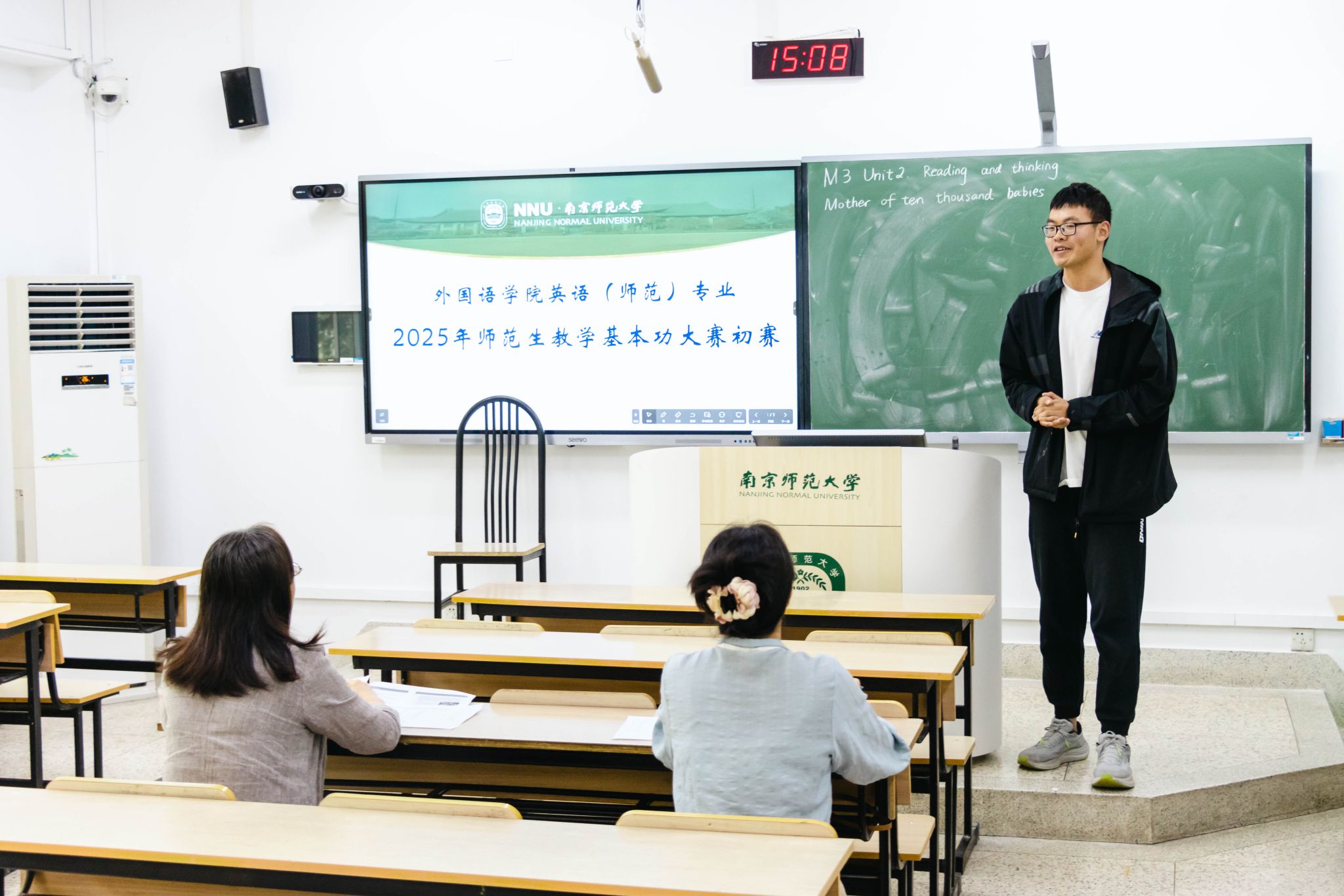 本次初赛吸引了2022级全体英语(师范)专业共107名学生参加。比赛内容涵盖了教学设计、模拟授课、板书设计、教学反思等多个环节,全面考察了学生的专业知识、教学技能和综合素质。参赛选手们精心准备,展现了扎实的专业功底和良好的教学风貌。