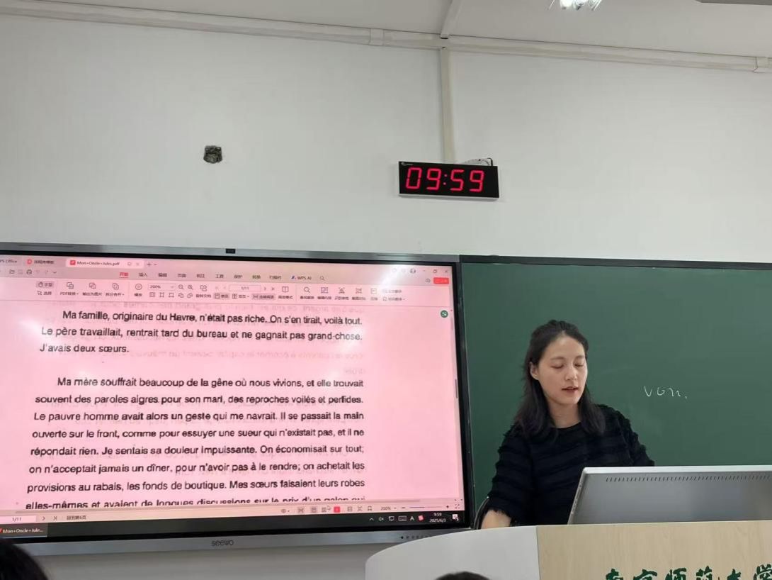 2025年5月20日学正楼,法语教学专家苑桂冠在南京师范大学学正楼为法语系学生开设讲座。本次讲座主题为“法语听力技巧”。讲座期间苑桂冠认真讲解了重点知识,帮助学生了解法语听写与听力的技巧。学生们积极参与互动,收获颇多。本次专题讲座圆满结束。