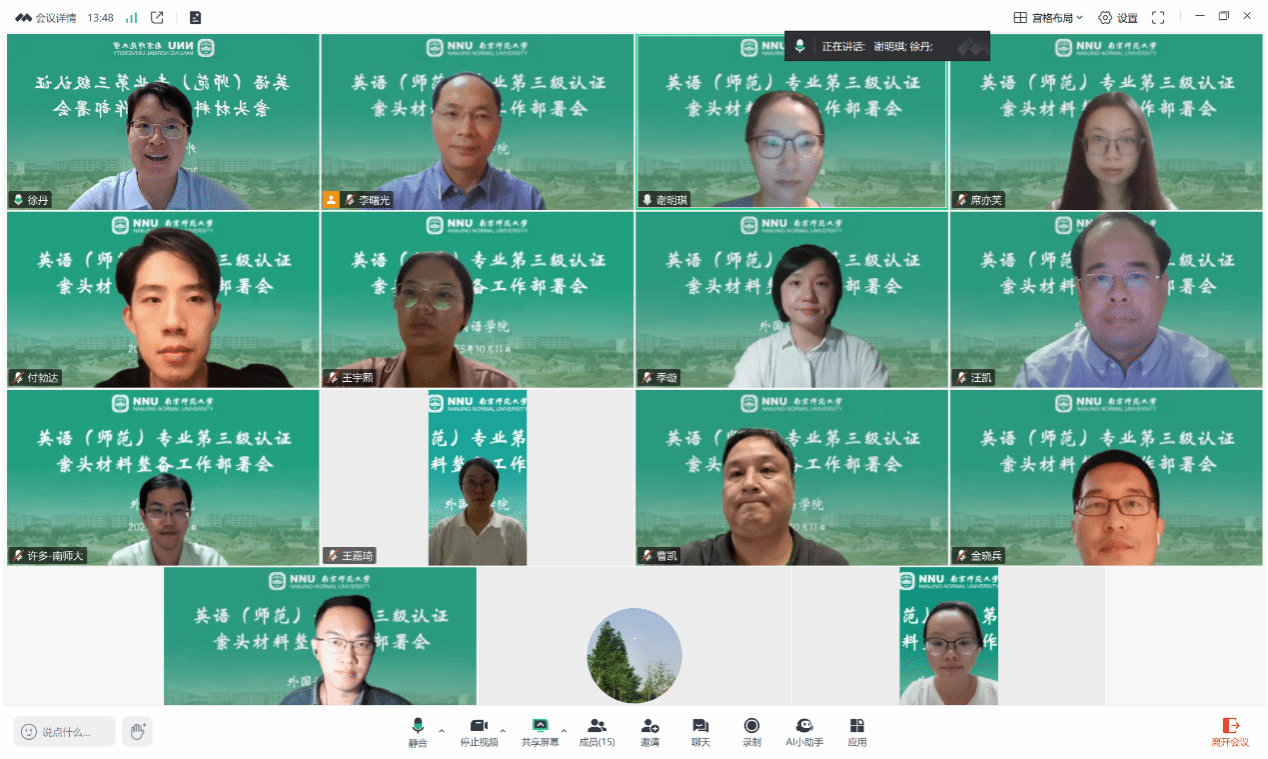于2025年10月11日晚组织召开线上动员会。认证工作领导小组及材料工作组全体成员参会,会议由副院长谢明琪主持。
