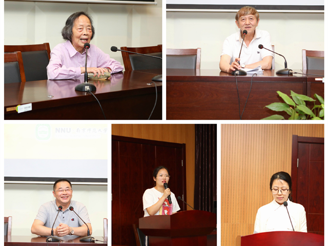 接着,离退休老党员代表朱淑琴和刘海峰老师、在职教师党员代表张辉老师、王宇熙老师以及研究生党员代表马明宇分别围绕着“问初心,践使命”的主题,向全体参会党员分享了他们的“初心”故事。朱淑琴老师当年无论是在高校工作,还是下放农村务农,都一直以共产党员的标准严格要求自己,发挥共产党员的模范带头作用,并且一直坚持着“一切依靠党,依靠组织,依靠群众,做群众的知心朋友”;刘海峰老师分享了当年在法国进修和参与法国“孔子学院”的建设工作经历,他说,作为当时法国阿尔萨斯大区孔子学院院长,作为一名共产党员,为推广祖国语言、传播中国文化,弘扬中国精神,无私奉献,无悔无怨,因为这一切都源于坚定的信仰。他向大家讲述了他作为共产党员所践行的信念——“人生的价值在于贡献”;张辉老师作为在职教师的优秀党员代表,向大家分享了他所践行的“老老实实做人,认认真真做事”的人生信条。23年的部队生涯极大程度上锻炼了他,来到南京师范大学后,张辉老师坚持其在军校的教书育人方法,带领研究生们每周开展随园语言学学术沙龙活动,严格要求学生,督促学生。张老师表达了他保持初心不变,愿为教育事业奉献终生的决心;王宇熙老师是今年加入中国共产党的新教师党员,她与大家分享了她入党之路上的感悟与反思。王老师表示,来到南师大工作后,身边的党员同事给予了她很多帮助,激励了她向党组织靠拢的决心,让她学会了“遇事不畏难,认真踏实做好事”;研究生党员马明宇同学为大家讲述了她的家乡在共产党人的带领下发生的巨大变化,分享了她的外公一生对共产主义的追求及对她的深刻影响。她还表示,作为一名少数民族共产党员,她会发挥表率作用,坚定维护民族团结,用不懈的努力实现一名共产党员的崇高信仰。