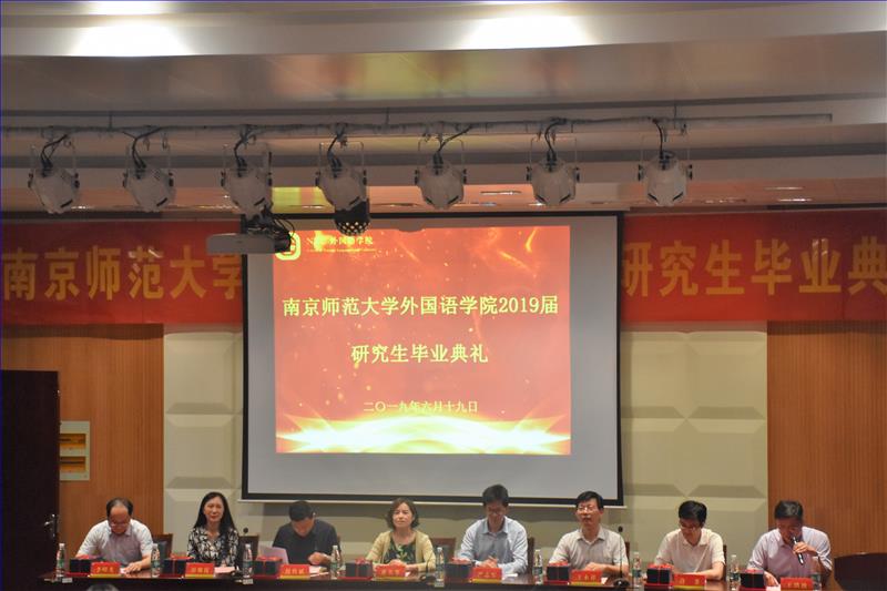 党委书记蒋其琴老师,院长严志军老师,教授委员会主任老院长张杰老师,副院长倪传斌、王永祥、田朝霞老师,院长助理许多老师,导师代表研究生教学部副主任李曙光老师、翻译系主任许诗焱老师、日语系主任林敏洁老师,家长代表和即将踏上新征程的2019届毕业生们。本次毕业典礼由学院党委副书记王洪波老师主持。