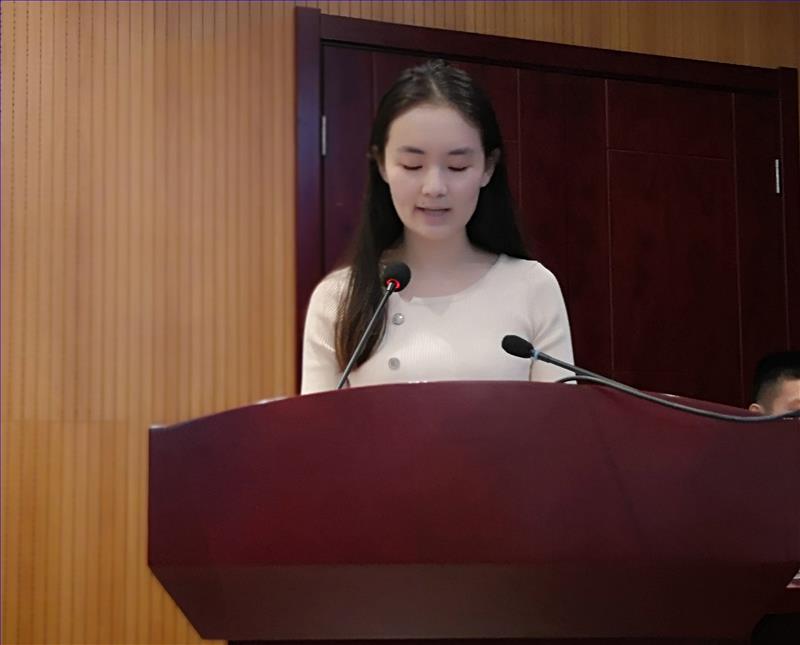 其次,2018级口译专业胡甜迪同学作为在校生代表上台发言,她从三个角度给予学弟学妹们建议,分别是认清自我,坚定目标和调节情绪。作为老生代表,她希望新生们要清楚认识自我,确定专业目标;而确定目标后就要懂得规划,不断探索;最后,在面临情感,学业和就业等诸多压力时,要调节好自己的情绪,切忌做情绪的奴隶。她表示希望自己研一的学习经历能够带给新同学们一些启迪,愿各位新同学们在南师大外院收获成长,收获关爱,书写人生的美好篇章。