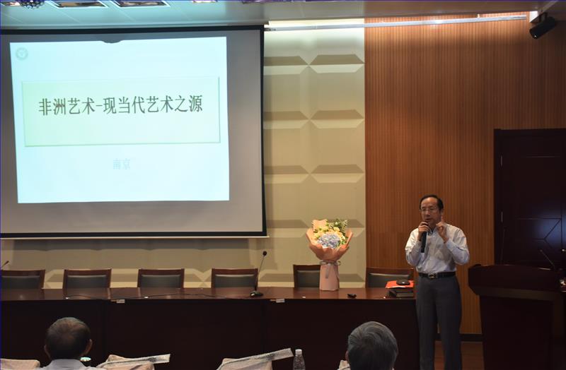 随后,连云港非洲艺博馆馆长、新丝路艺术馆馆长王少波先生向大家展示了毕加索的画作以及非洲的艺术品,讲述了毕加索从二维、三维模式创作到吸收了非洲艺术元素之后完成四维模式创作转变的过程,指出非洲艺术元素的加入是毕加索创作时期的一个重要转折点,从而让同学们了解到非洲艺术可谓现当代艺术之源。