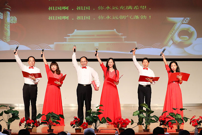 随后,全体校友和师生代表一同观赏了由全院教职工、校友代表、学生共同创作和演绎的庆祝新中国成立70周年文艺演出。