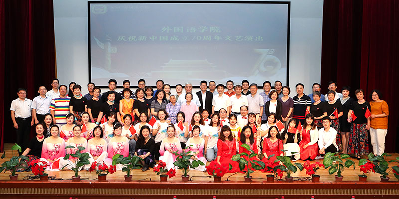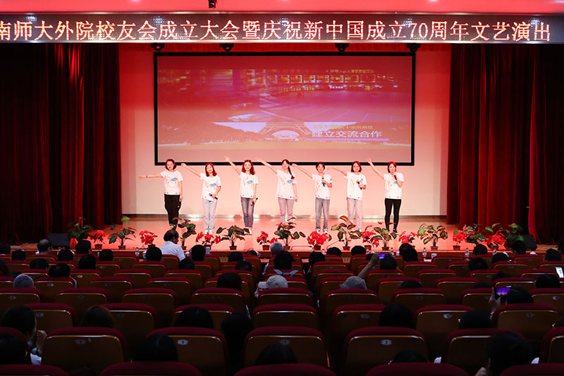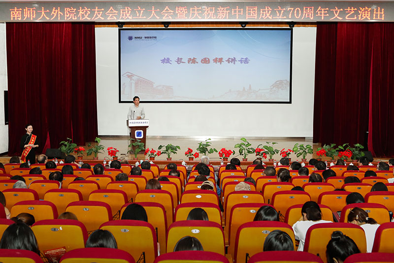 校友会成立大会暨庆祝新中国成立70周年文艺演出在随园校区贻芳报告厅举行。校长陈国祥,副校长朱晓进,校相关职能部门负责人,外院各级、各地区校友代表,外院历任主要领导、全体现任领导、学院在职及退休教师代表,以及学生代表共300余人齐聚一堂,共同见证外院校友会的成立,并一起喜迎祖国华诞。大会由学院党委书记蒋其琴主持。