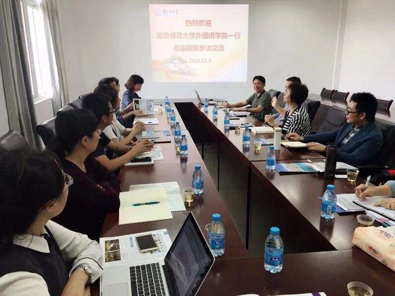 2018年11月9日,在教育部新时代全国高等学校“加快建设高水平本科教育,全面提高人才培养能力”的核心精神引领下,由英语系邵珊、施光、季璇、金晓兵;日语系王彤;翻译系徐丹;法语系李燕;学工蔡健组成的南师大外院代表团一行八人来到厦门大学外文学院参加本科教学工作交流。