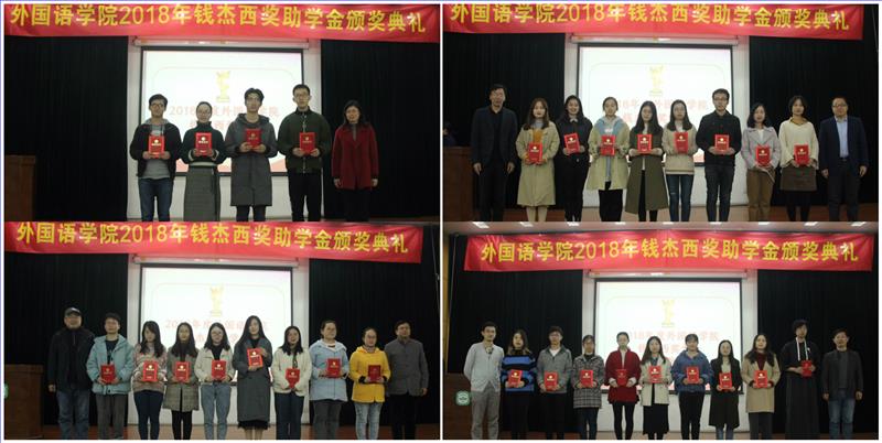 在仙林校区敬文图书馆二楼西报告厅隆重举行2018年钱杰西奖助学金颁奖典礼,出席典礼的有江苏省政协副主席、南京师范大学副校长朱晓进老师、学生工作处处长李莉老师、教务处副处长朱竹青老师、党委研究生工作部副部长薛枫老师、博彩网址大全