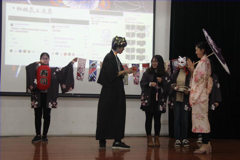 其后,17级日英班上台展示了学风文化的特色建设。优良的学风建设、独特的文化交流、卓越的日常生活风采赢得现场掌声连连,激励着每一位外院学子在钱杰西精神的鼓舞下扬帆起航,纵然有惊涛骇浪仍有坚定的信仰、奉献的力量!