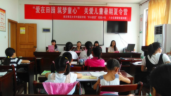 首先在钟林片的党员活动室举办关爱儿童暑期夏令营开幕式,有三家媒体来访,分别是南京电视台,六合区电视台以及六合区报社。本次开幕式由六合区横梁街道妇联主席主持,横梁街道宣传委、六合区横梁街道妇联主席、六合区妇联主席及南师大志愿者代表发言。她们纷纷表示希望活动取得圆满成功,让孩子们寓学于乐,愈学愈乐。