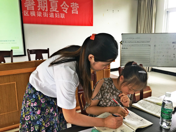 2018年7月5日星期四,窗外暴雨如注,教室内热情洋溢,“乔木荫夏”实践分队迎来横梁街道支教的第一天。