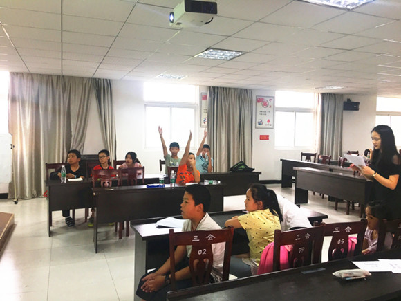 在这五天的时间里,队员们每天上午在八点半到九点十分、九点二十到十点十分、十点五十到十一点半这三个时间段里进行课业辅导的教学活动;在十点二十到十点五十期间带着小朋友做一些英语小游戏——例如:抱团游戏、萝卜蹲、单词接龙等。中午有两个小时的休息时间,在这段时间里,小朋友们吃完饭后会看半小时的电影然后睡觉休息。下午的活动时间为一点半到四点。这段时间可以分为三个阶段,第一阶段为英语国家文化介绍,这五天的教学内容分别为:足球文化介绍、饮食文化介绍、英国皇室文化介绍、好莱坞介绍与迪士尼介绍。第二阶段为二点四十到三点的英文歌曲教唱,到今天为止,负责这部分教学活动的队员已经完成了:“Apple Song”、“If you are Happy”、“Five Monkeys”、“Old Macdonald”与“Moon River” 等歌曲的教唱。第三阶段为专题教育活动,这一部分队员主要是教导留守儿童一些与人相处、保护自己、学会自信之类的道理,同时对他们进行一定程度的心理疏导,让他们学会理解,学会“爱”;到目前止,队员已经完成的专题教育有:“培养兴趣爱好”、“法律小知识”、“学会自我保护”等。