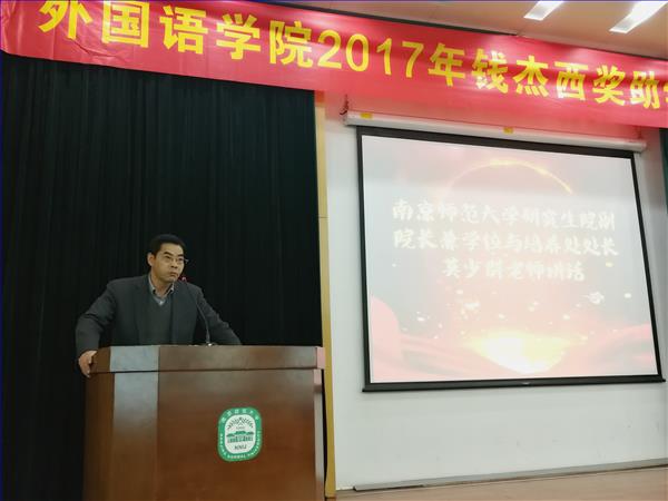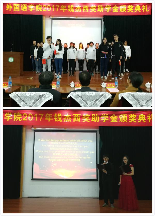 钱杰西奖助学金不仅是对南师外院优秀学子的一种物质奖励,也是一种精神鞭策。通过本次颁奖典礼,相信获奖者们将会秉承钱杰西精神再接再厉,其他外院学子也会以这些同学们为榜样,不断鞭策自己奋发前进,南师外院也将迈向更加辉煌灿烂的明天。(外院/诸贝贝)