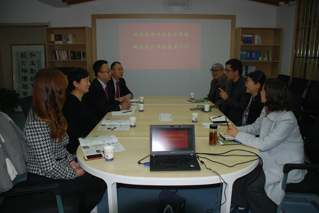 博彩大全 严志军院长向孔子学院的中美方嘉宾介绍了博彩大全 国际交流方面所做出的成绩以及今后的一些打算,并就双方之间的交流合作与来宾展开深入的讨论。