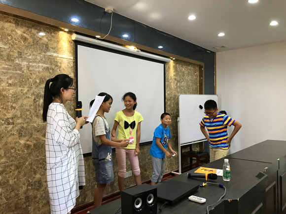 在学习之余,还有形式多样的趣味游戏、英文歌曲教学和电影鉴赏。趣味游戏包括“同心结”、游戏“动物猜猜猜”以及各种单词游戏等。在游戏中,孩子们不仅巩固了所学的单词还增强了团队协作能力。英文歌曲有小星星、You Are My Sunshine等。孩子们对照歌词纸页,一边听王老师逐字逐句地阐释歌词大意,一边在银老师的领唱下,微笑齐唱歌曲。简单易记的旋律回荡在教室里,满是孩童蓬勃的朝气。电影鉴赏也是活动的重要环节,精心挑选的影片各自对应着一个有关成长的主题,能够给孩子们启发性的教育。