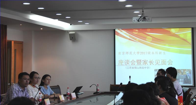 7月25日下午4点,南京师范大学2017级本科新生(江苏省锡山高级中学)录取通知书颁发仪式在江苏省锡山高级中学成功举行。参加会议的有南京师范大学党委书记胡敏强教授、学工处李莉处长、学院党委蒋其琴书记、党办徐楠副主任、学工处景飞副处长、学院党委王洪波副书记,江苏省锡山高级中学的校长及教师代表。同时参会的还有南师大2017年录取的江苏省锡山高级中学30名本科新生和部分家长代表。
