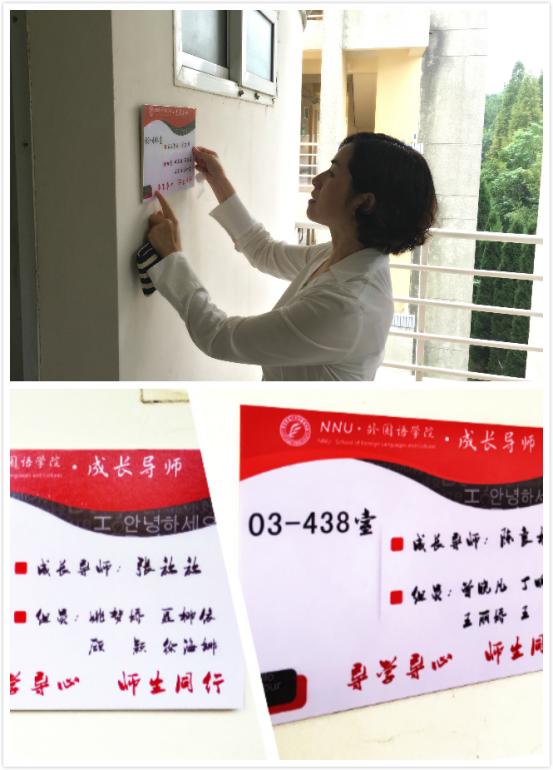 8月31日下午两点,党委书记蒋其琴老师,院长严志军老师,党委副书记王洪波老师,副院长田朝霞老师,张放放老师,王彤老师,陈良梅老师,及辅导员一并前往仙林校区新生宿舍看望新生。令人瞩目的是,今年在学生管理方面,外院创新性地开启了“成长导师”制度。在今后的学习生活里,无论是学业还是生活方面的疑问,学生都可直接与对应导师沟通,这一举措进一步拉近了师生间的距离。慰问过程中,院领导向学生家长阐明了这一制度的优越性,并亲自张贴导师卡,赢得家长的一致赞许。