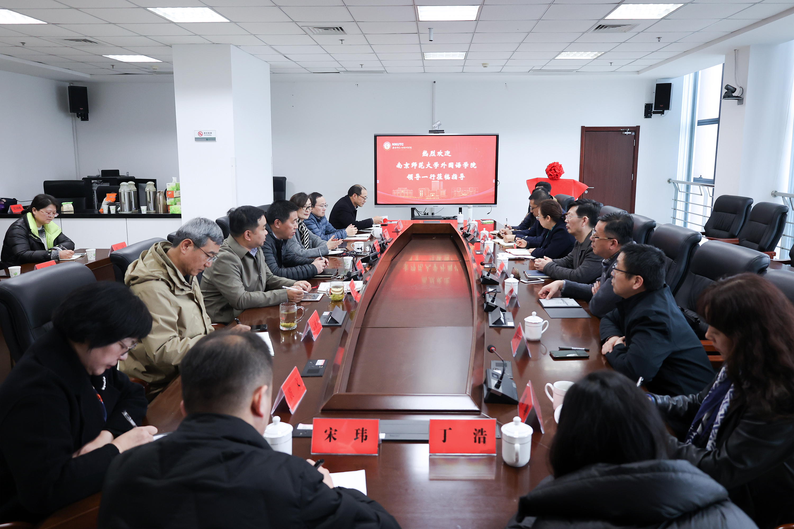 党委书记孙绪敏、院长王永祥一行前往南京师范大学泰州学院调研交流,南京师范大学泰州学院常务副院长储志东、党委常务副书记朱梅等党政领导班子成员参加了本次交流。