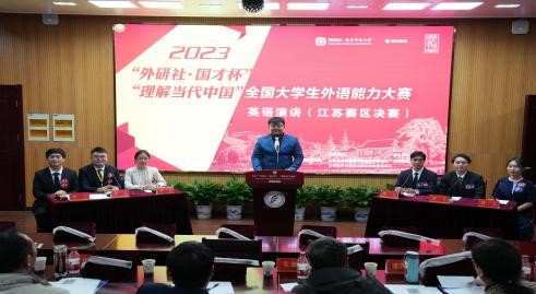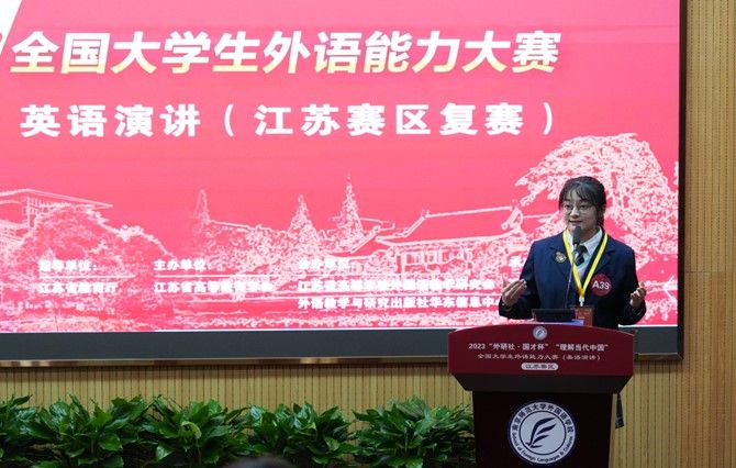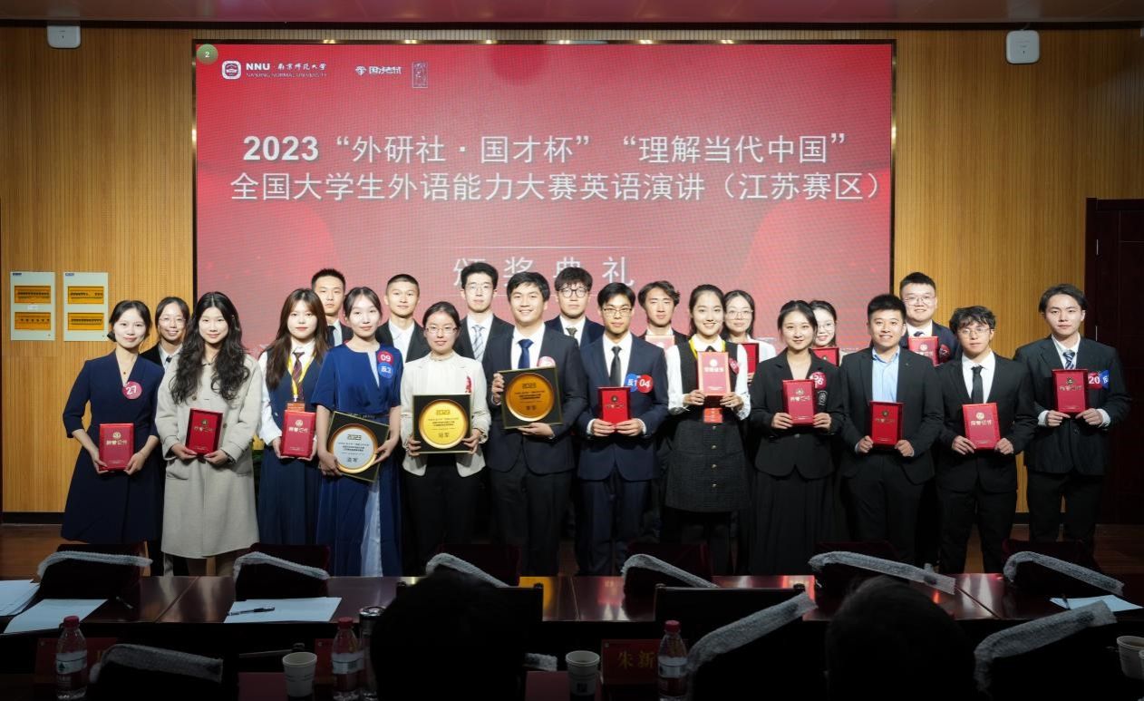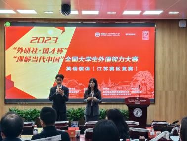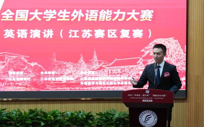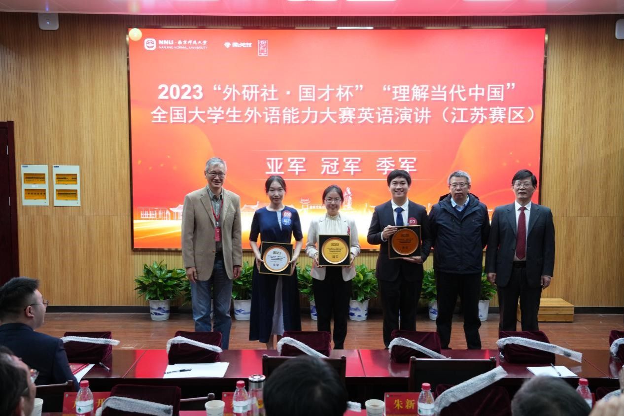 讲好中国故事,传播好中国声音。2023年11月9日至11日,2023“外研社·国才杯”“理解当代中国”全国大学生外语能力大赛英语演讲江苏赛区决赛在南京师范大学成功举行。来自全省74所院校的173名参赛选手、百余名指导教师和专家评委参与本次赛事。选手们围绕指定主题“The Chinese Path to Modernization”,以不同角度入思,用语言碰撞思维,以思辨展现风采。经过激烈角逐,24名选手脱颖而出,将代表江苏参加全国总决赛,来自南京大学的王羽婷,河海大学的马金戈和东南大学的文辰煊分获冠、亚、季军。