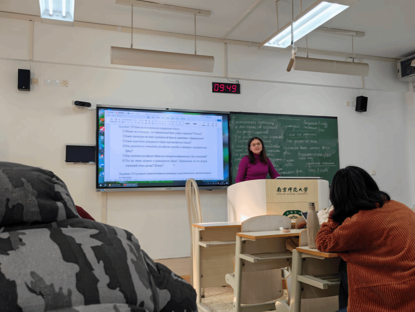 On November 7, 2023, Yulia, an expert in Russian language teaching, gave a lecture to the students majoring in Russian at Nanjing Normal University in Xueming Building. The topic of the lecture was “Overview of contemporary Russian social problems”. In the lecture, Yulia introduced the problems of education, employment, marriage and love in Russian society by using videos and pictures, she also kindly and actively interacted with students. The lecture was a great success and the students gained a lot from it. (供稿人:博彩网址大全