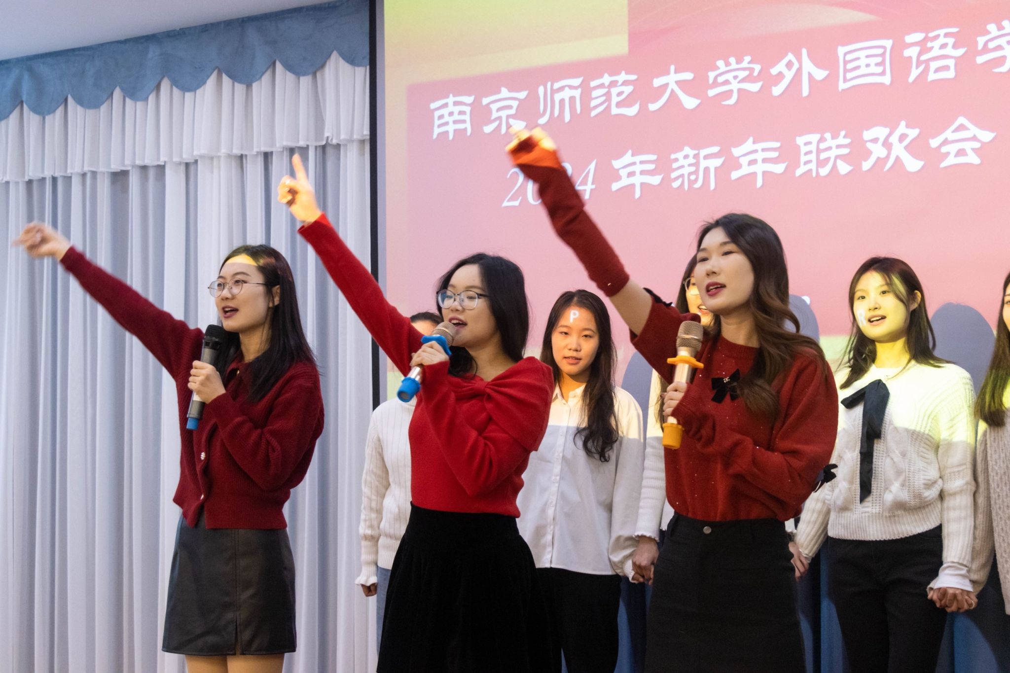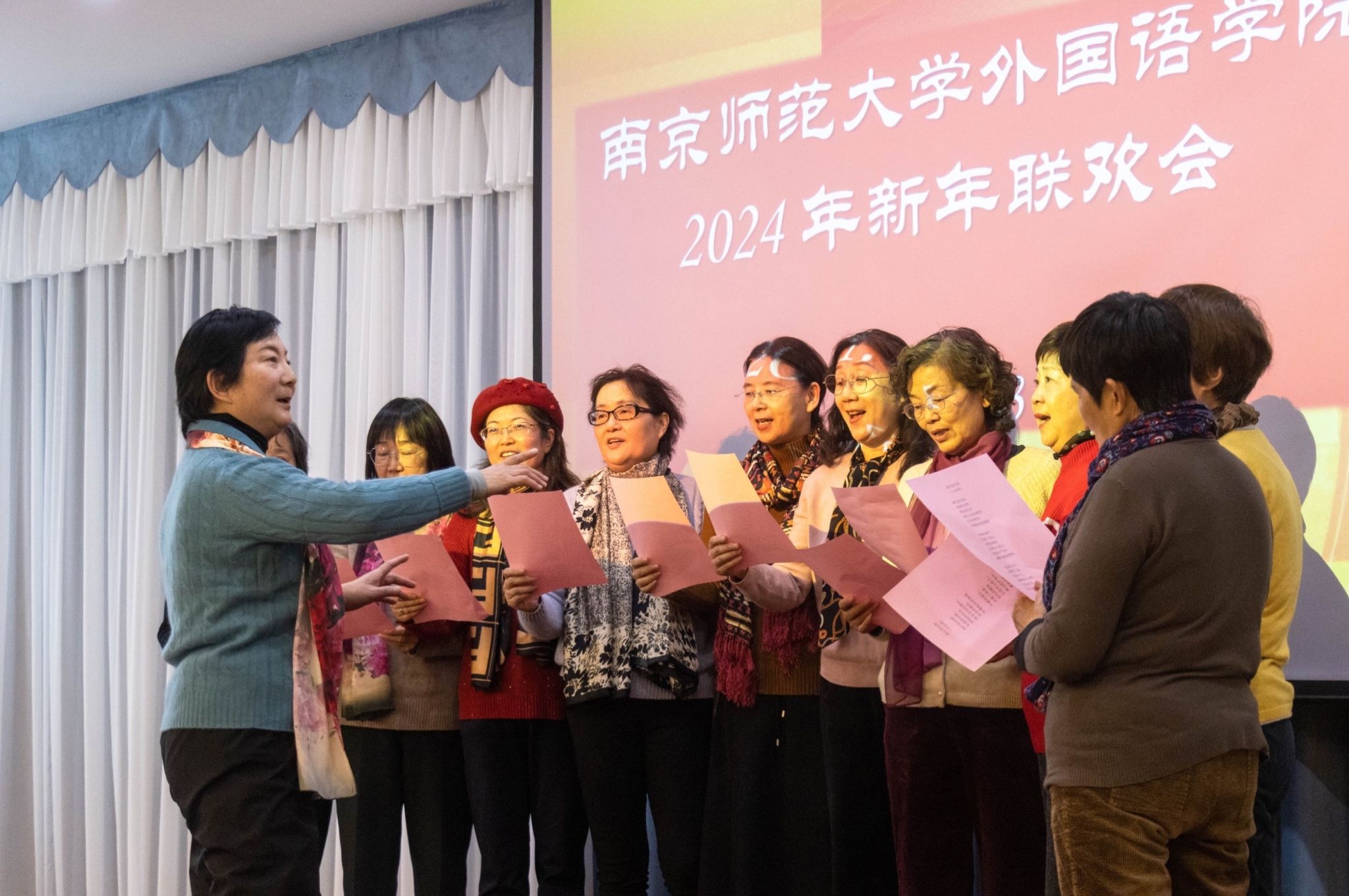 祥龙纳福迎春到,瑞气盈门接岁来。1月3日下午,外国语学院2024年新年联欢会在随园校区精彩上演,孙绪敏书记、王永祥院长携学院领导班子和全体教职员工,邀请院退休教师以及学校部门的多位嘉宾欢聚一堂,共话新春迎新年,同谱外院新篇章。