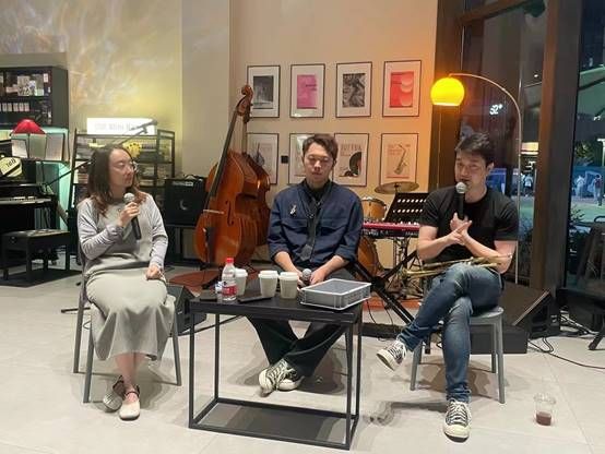 分享会上,潘艺老师首先播放了一段关于翁布里亚音乐节的介绍视频,让我们对这项诞生于1973年的音乐节有了初步了解。然后,两位嘉宾分享了爵士乐的相关知识以及他们各自的一些演奏经历,并与现场的其他几位乐手一起演奏了不同风格的爵士乐。最后,潘艺老师播放了另一段介绍翁布里亚音乐节的视频,大家开始自由交流,在怡人的夜景中体验爵士现场的美妙。