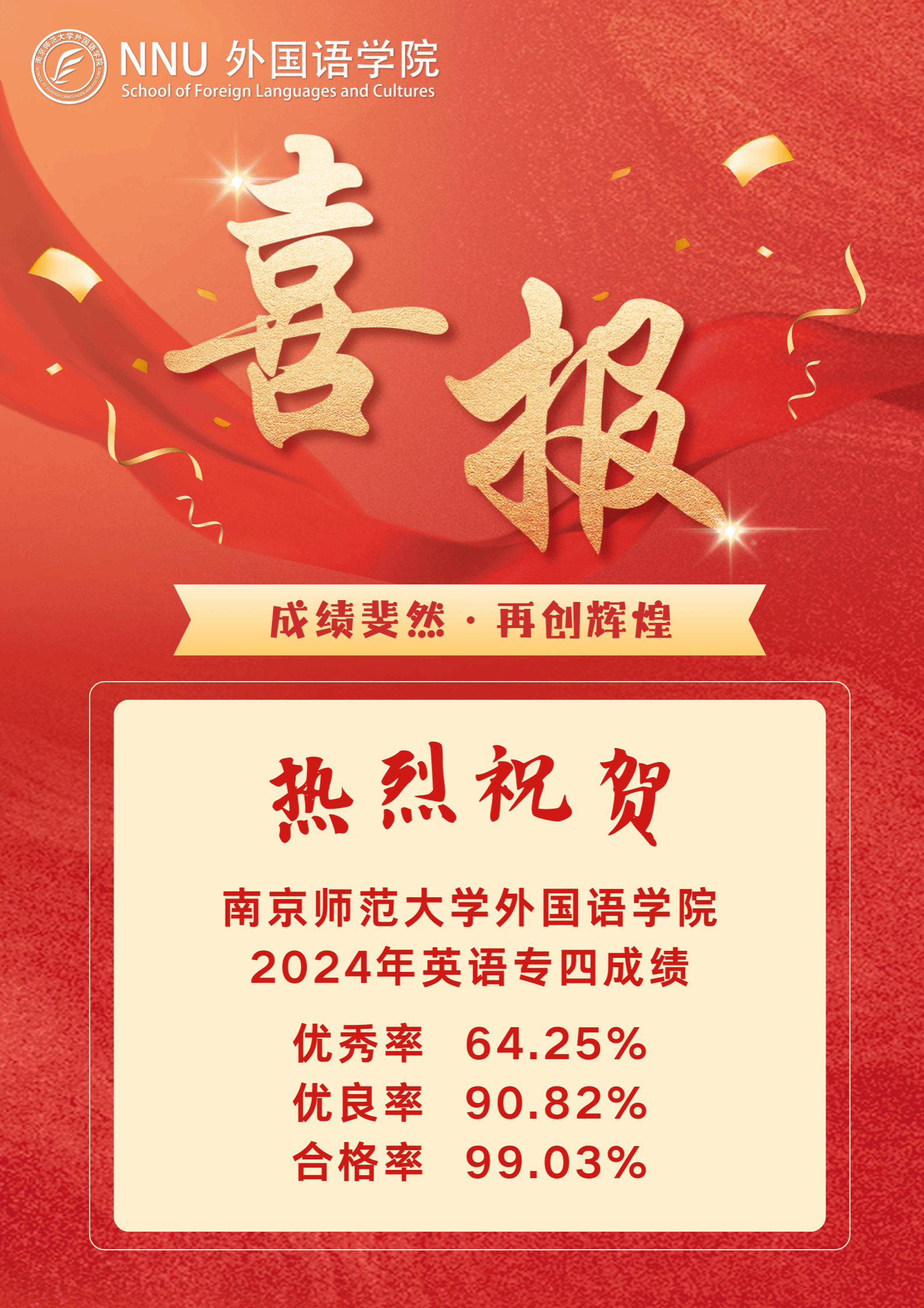 2022级英语(师范)、英语(双外语)等各专业共计207位学子参加英语专四考试,205位同学顺利通过,合格率高达99.03%;其中133人成绩达到“优秀”等次,优秀率达64.25%;188人成绩达“良好”等次及以上(含“优秀”等次),优良率高达90.82%,创历史最好成绩。值得一提的是,英语(师范)专业052214班全体29名同学本次专四成绩均达“优秀”等次,取得了优秀率100%的卓越成绩!这一佳绩不仅是学生个人努力与才华的璀璨展现,更是学院长期以来致力于学风建设、教学质量提升以及学习氛围营造的累累硕果。