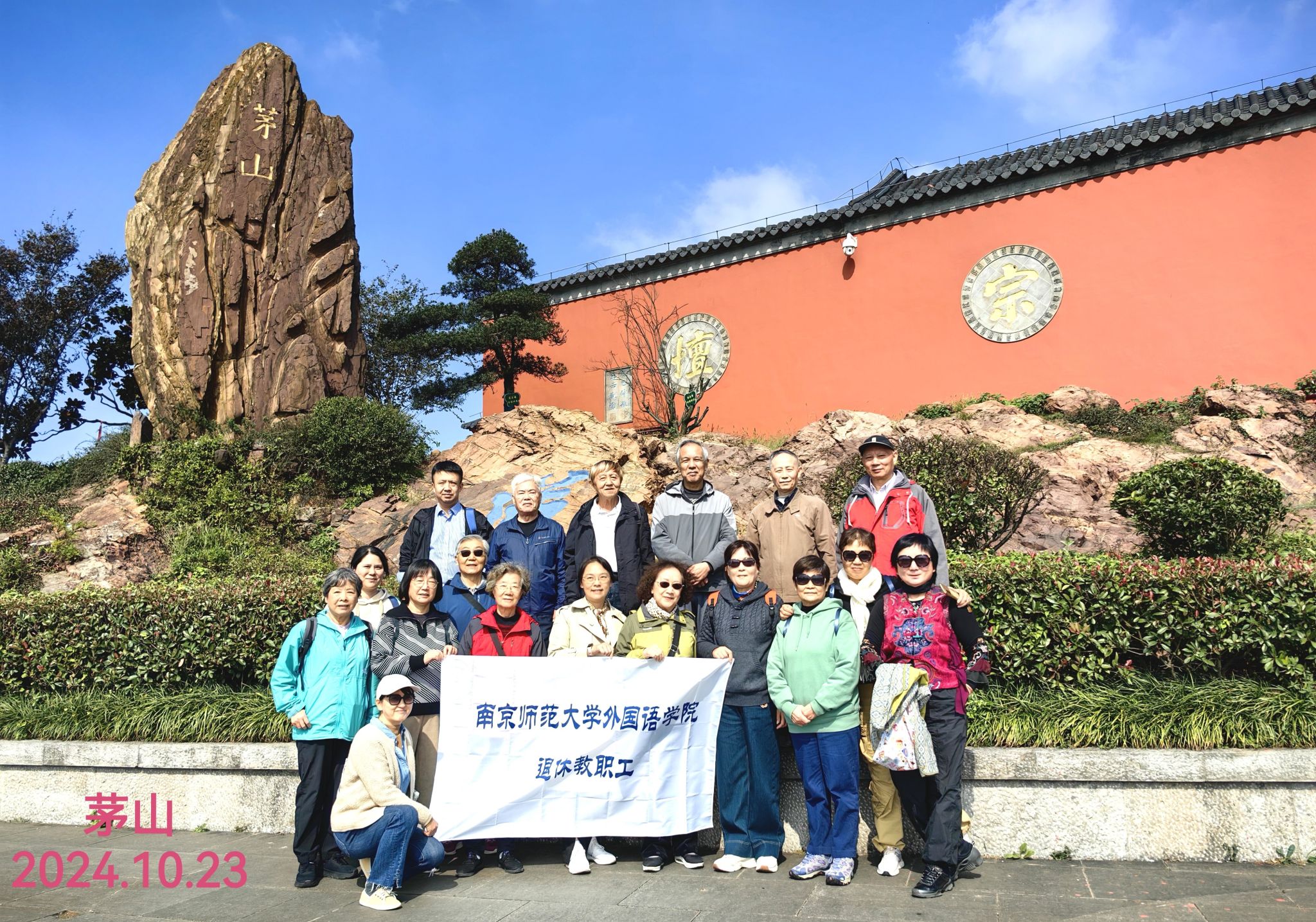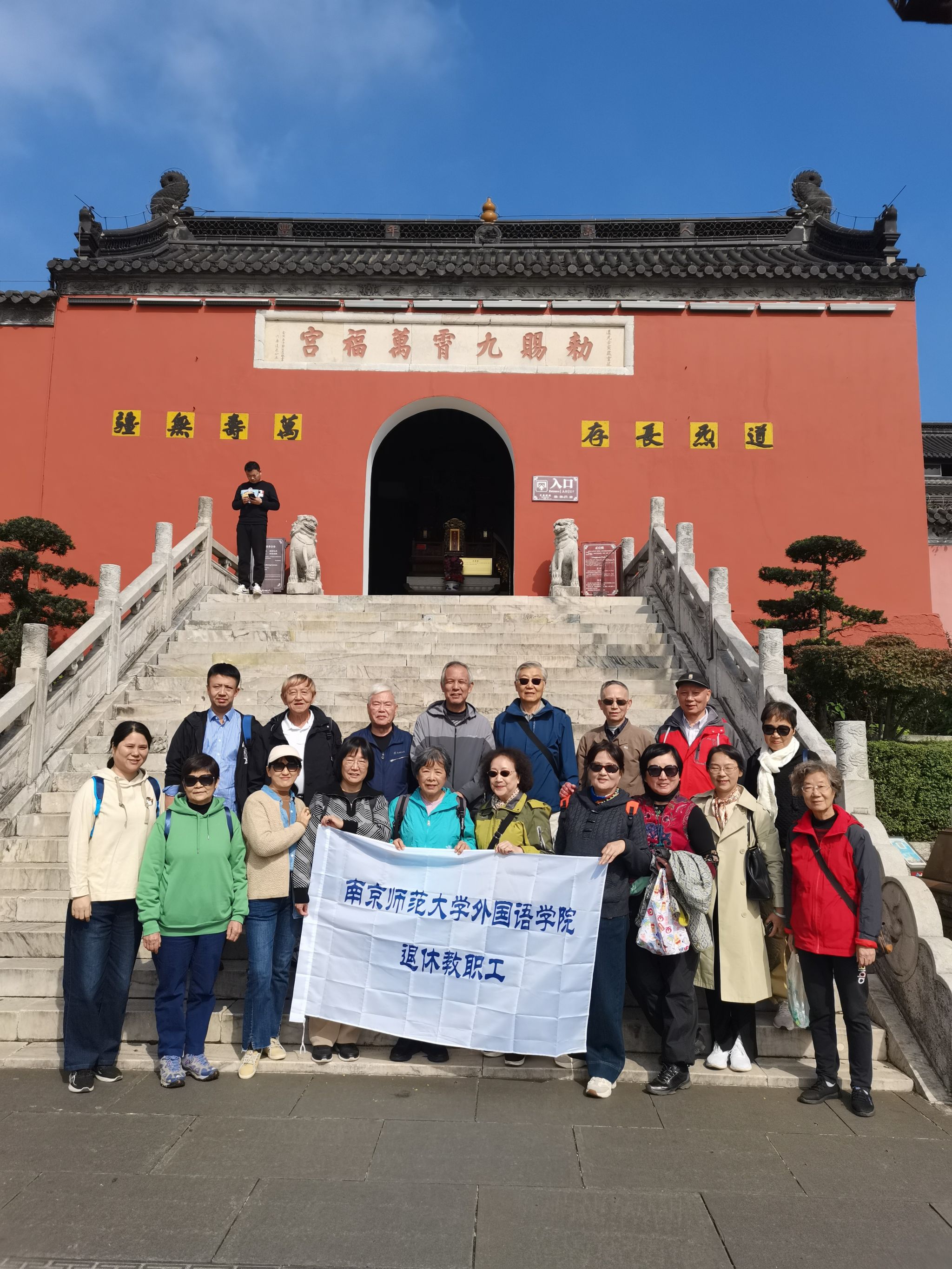 办公室3名工作人员陪同15名退休老教师在随园校区乘坐大巴出发,车内大家谈笑风生,互致问候,其乐融融。经过一个多小时的行驶,来到了素有“秦汉神仙府,梁唐宰相家”美誉的道教圣地句容茅山。茅山自然风光清新秀美,山区形胜独特,枝繁叶茂,景色迷人,彰显道法自然、天人合一的山水情怀。天高气爽暖阳普照,满山遍野层林尽染。