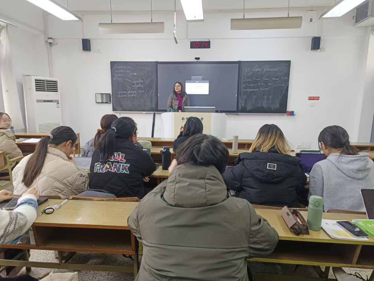 2024年11月13日学正楼,俄语教学专家尤利娅为俄语系学生开展初级俄语口语技能讲座。讲座期间尤利娅认真且幽默地讲解了重点知识,帮助学生了解相关句型及词汇表达。学生们积极参与互动,收获颇多。本次专题讲座圆满结束。